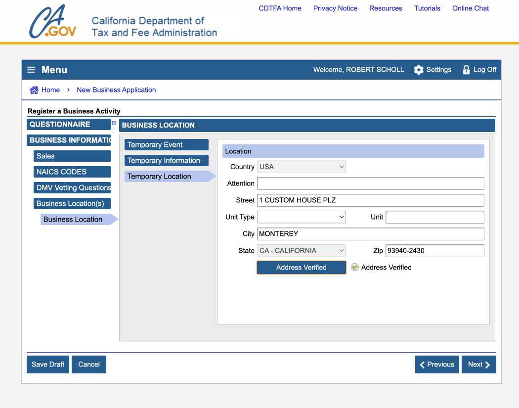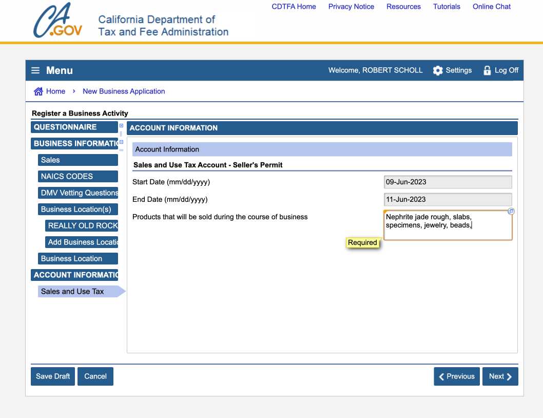 This is a much simpler form to fill out, very straight forward but you will need your CA sellers permit number to complete the process.